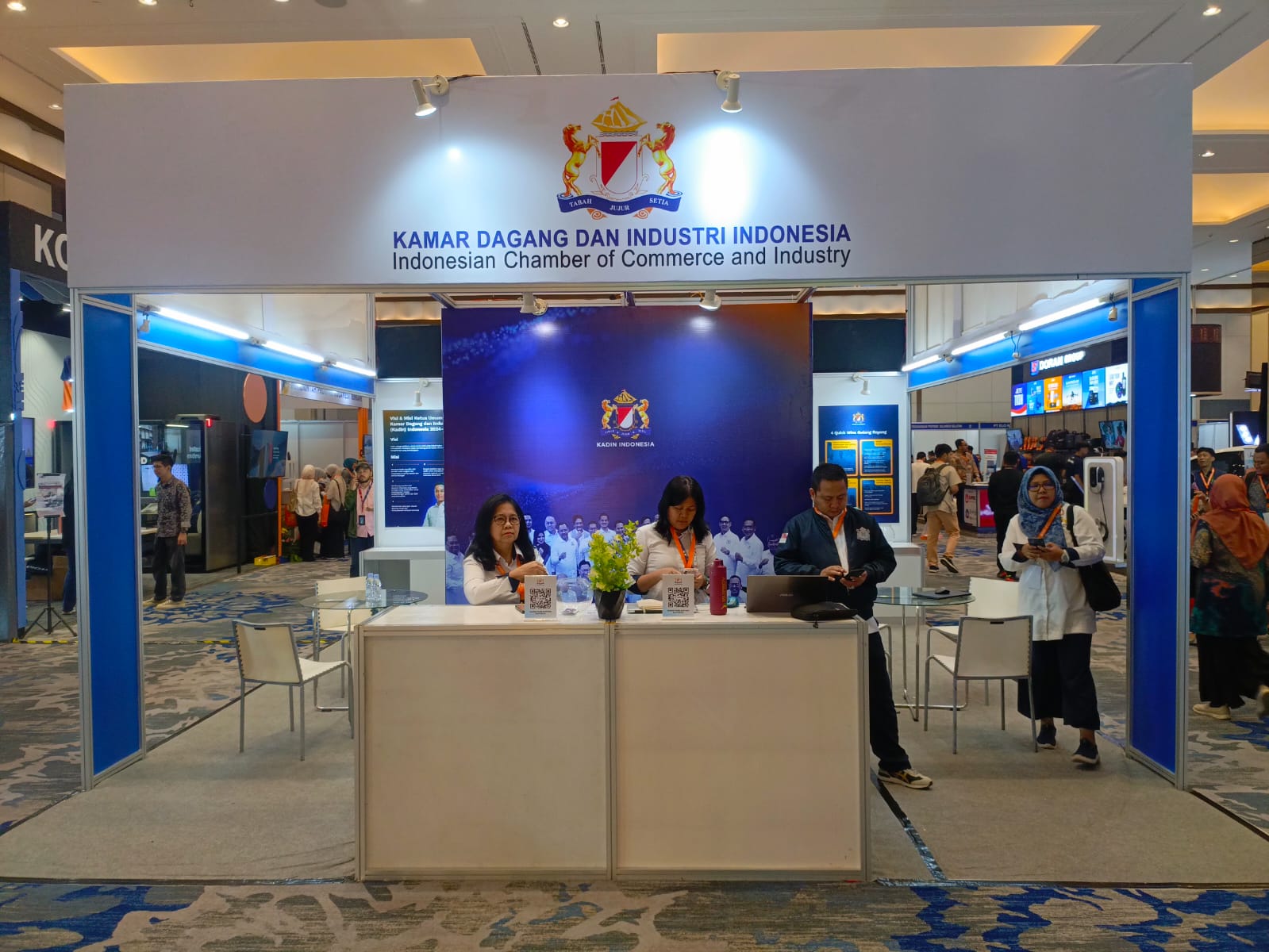 “KADIN disini selalu berkomitmen bahwa kami selalu menjadi bagian solusi. Salah satu solusi adalah menciptakan peluang-peluang kerja. Melalui e-katalog dan pameran ini, kami ingin memperlihatkan bahwa sangat banyak peluang pekerjaan yang bisa didapat. Di pameran ini tidak hanya mendapat peluang pekerjaan tetapi juga bisa menambah pengalaman dan pengetahuan”, jelas Suryo Wicaksono.