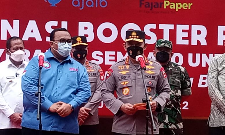 Rakyatbicara.id-Cikarang Barat, Kantor Berita RBN – Vaksinasi serentak Indonesia yang dipimpin langsung oleh Kapolri Jenderal Listyo Sigit Prabowo yang dilaksanakan di wilayah PT Fajar Paper Desa Kalijaya, Cikarang Barat, Kabupaten Bekasi Rabu 9/3/2022 turut didampingi oleh Plt. Bupati Bekasi H. Akhmad Marjuki.