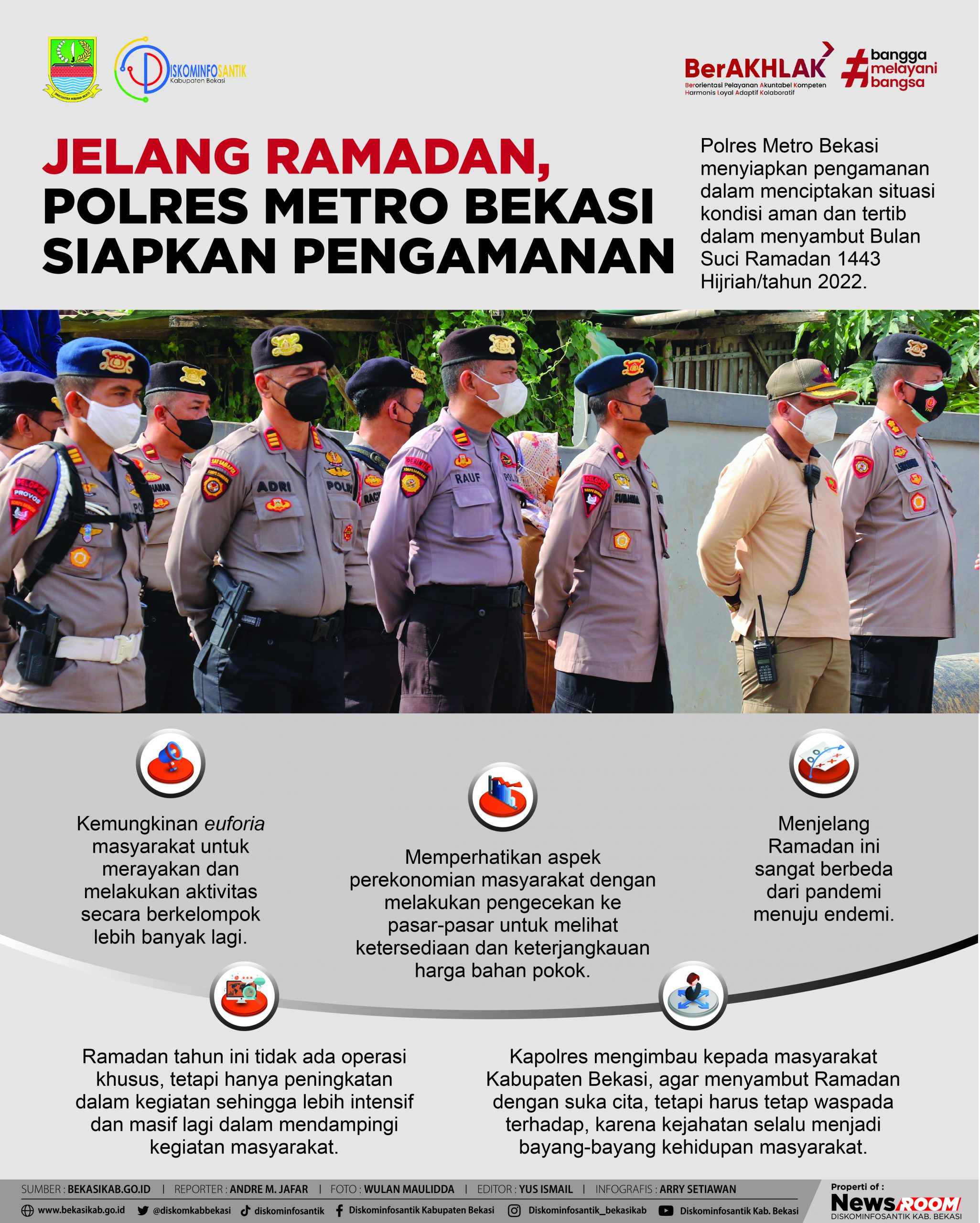 Rakyatbicara.id – Cikarang, Kantor Berita RBN – Polres Metro Bekasi menyiapkan pengamanan dalam menciptakan situasi kondisi aman dan tertib dalam menyambut Bulan Suci Ramadan 1443 Hijriah/tahun 2022.