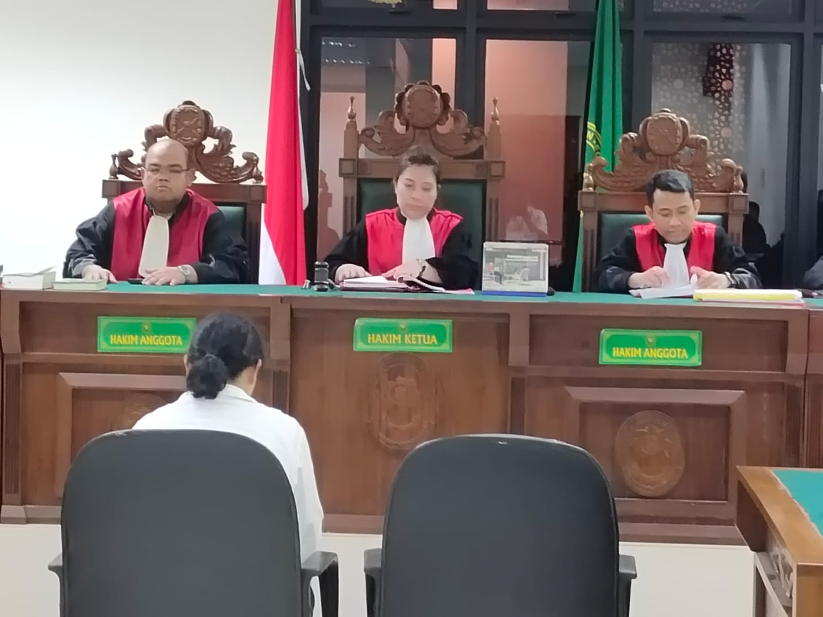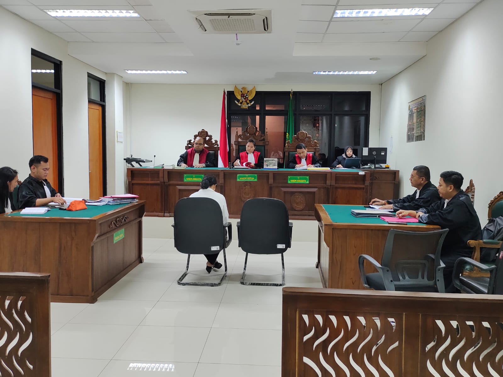 Dalam ruang sidang kali ini masih di ketuai oleh Majelis Hakim Maria Krista Sandra,SH yang tampak melemparkan berbagai pertanyaan saat