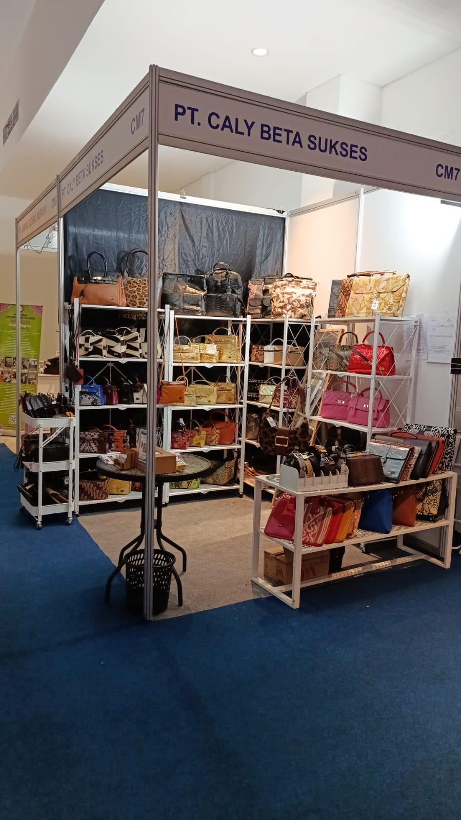 Selama pameran, ia juga menjelaskan seluruh produk Caly Bags kepada para pengunjung dan pembeli yang ditampilkan di area khusus UMKM. Lokasi Caly Bags terletak di sebelah stand PT. Jakarta Global Nuraini.