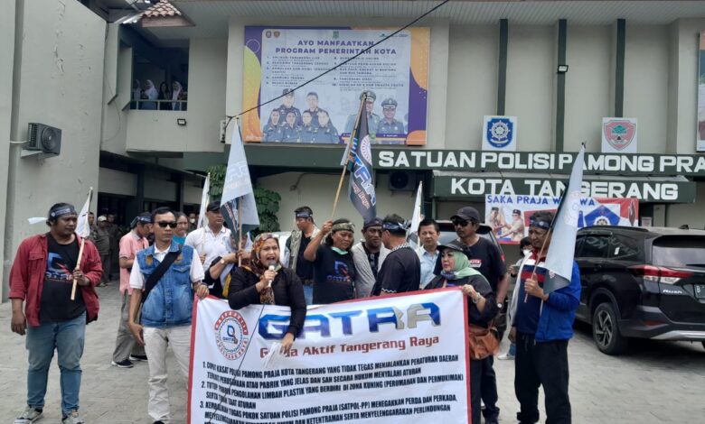 Rakyatbicara. Id, Kota Tangerang – Kantor Berita RBN – Puluhan massa aksi yang tergabung dalam Garda Aktif Tangerang (GATRA) melangsungkan Demonstrasi di depan PT.Fefi Plastik, pabrik pengolahan biji plastik yang berada di jalan lmam Bonjol, gang Kramat Kelurahan Sukajadi, Kecamatan Karawaci, Kota Tangerang, kamis (5/19/23).