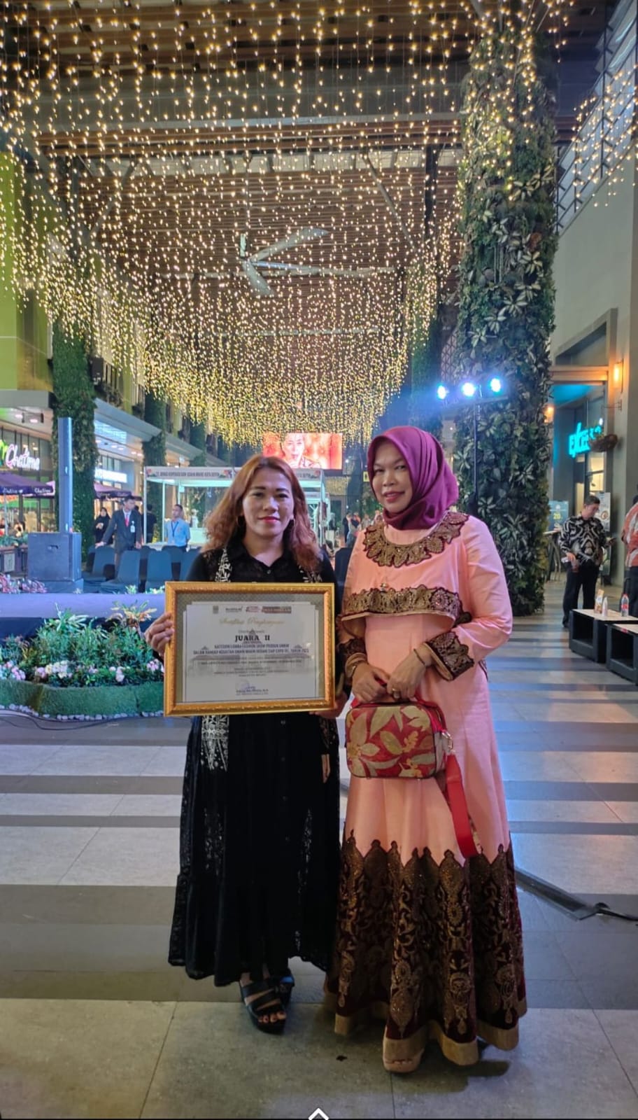 Hasil penilaian dari aksi catwalk serta presentasi produk tas batik dan ecoprint ini telah dicapai oleh Rolasta Arnie Sianturi selaku pemilik Handycraft Caly Bags dan juga pelaku UMKM asal Kecamatan Tambun Selatan, Kabupaten Bekasi.