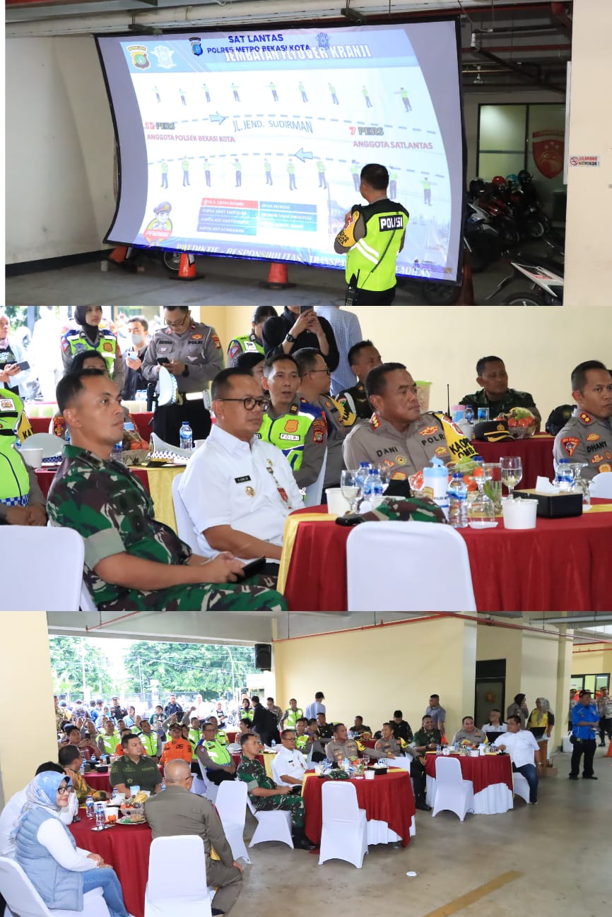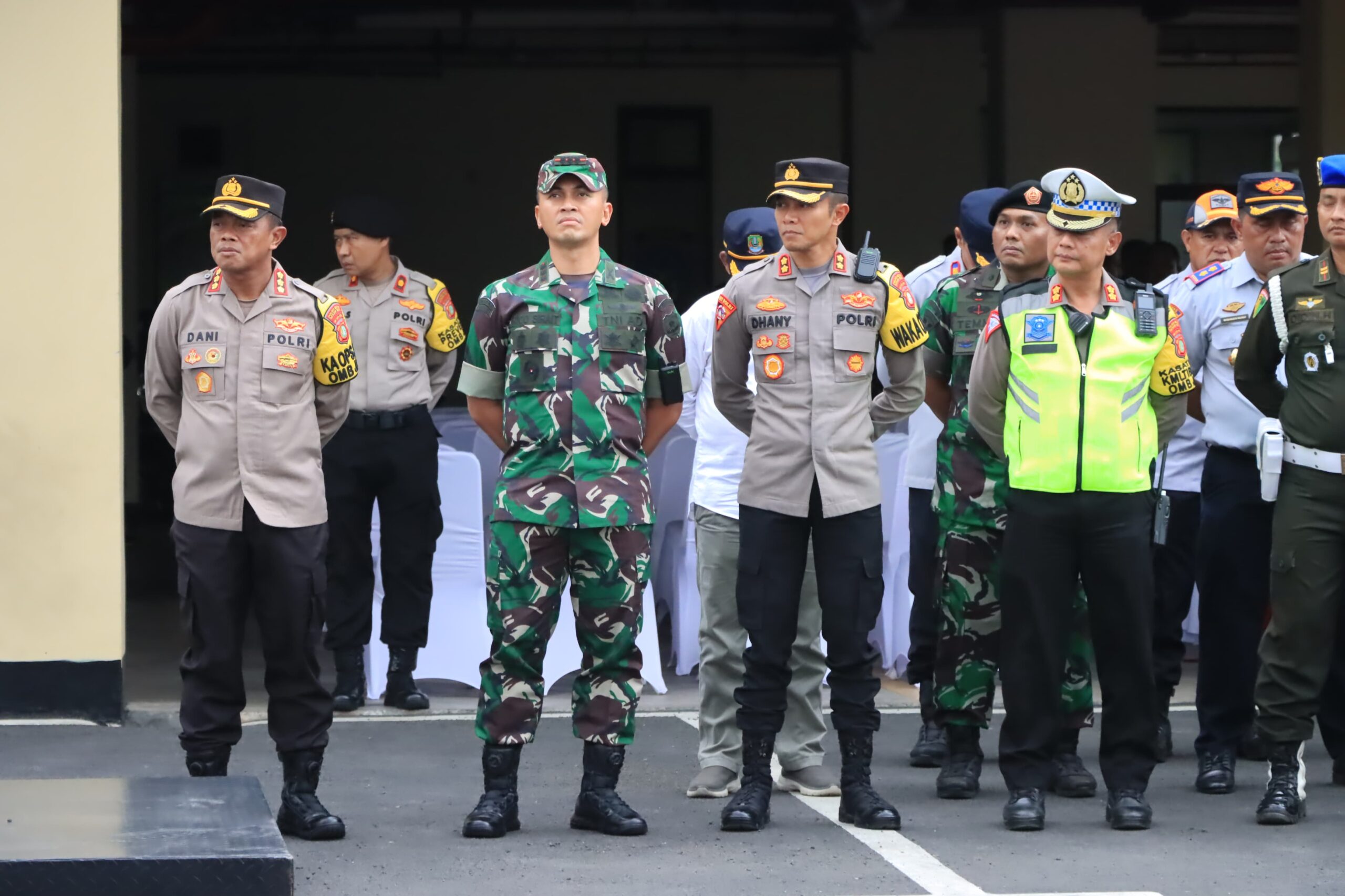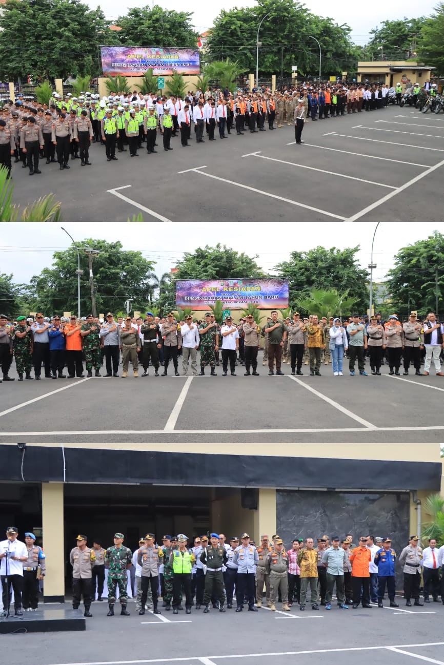Apel gabungan ini digelar dalam rangka mengamankan kegiatan ibadah malam tahun baru di gereja wilayah Kota Bekasi dan pengamanan perayaan pergantian malam tahun baru 2024 di wilayah Kota Bekasi yang diadakan di halaman Mapolres Metro Bekasi Kota jalan Pangeran Jayakarta No. 28 Kel. Harapan Mulya, Kec. Medan Satria, Kota Bekasi, Minggu (31/12/2023).