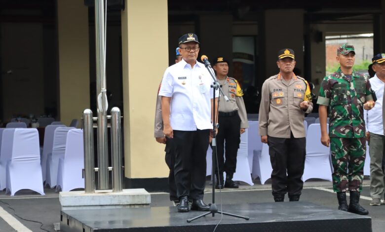 Pj Wali Kota Bekasi Pimpin Apel Gelar Pasukan 3 Pilar dalam rangka Pengamanan Malam Tahun Baru 2024.